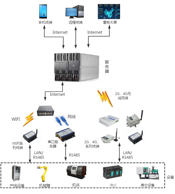 终端设备可以通过有线网络(以太网)和无线网络(2G、4G、WIFI等)方式接入网络。