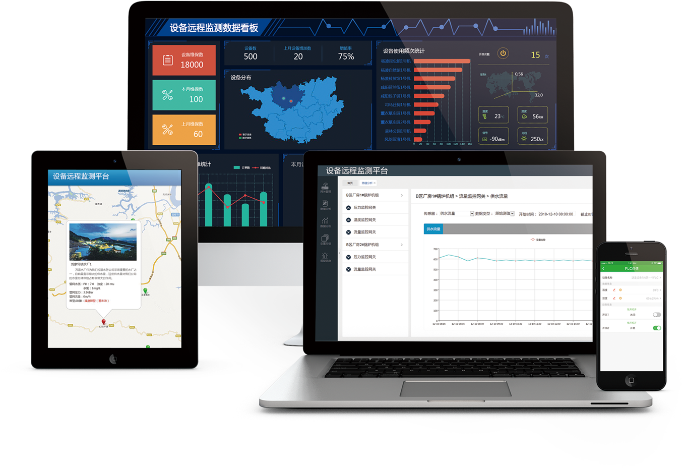 设备远程监控是建立在现代的计算机技术、通信技术、控制技术以及图形技术上的一个新的应用。远程实时监控系统,是本地计算机系统通过网络系统特别是对远端的控制系统进行监测与控制的系统。系统结构包含现场智能设备层、SCADA数据采集传输层、平台层以及应用层。通过智能采控终端采集设备的各项数据,将数据上传到云平台,存储、整理、分析,通过智能应用系统实现时时在线监控、记录、查询、统计、分析、修改、报警等操作,实现远程智能化管理,提高企业智能化管理水平。
